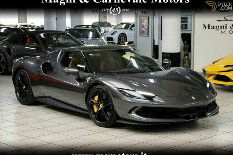 FERRARI 296 GTB EXTERIOR: "CORES CLÁSSICAS" CINZA SILVERSTONE INTERIOR: COURO EQUIPAMENTO: Veículo híbrido plug-in Transmissão automática com patilhas no volante Sistema de navegação por satélite Controlo automático da climatização Sensores de estacionamento dianteiros e traseiros