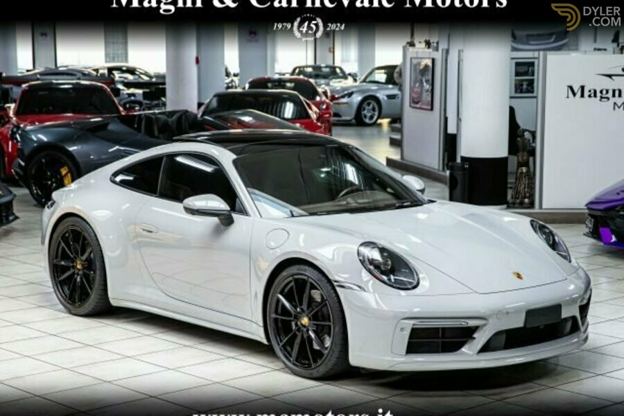 PORSCHE 992 CARRERA S EXTERIOR: PINTURA "GESSO" INTERIOR: COURO INTEGRAL "MARRONE TARTUFO" EQUIPAMENTO: Porsche Active Suspension Management (PASM) com suspensão desportiva 10 mm mais baixa Porsche Torque Vectoring Plus (PTV Plus) Suportes dinâmicos do motor (PADM) Pacote Sport Chrono Sistema de escape desportivo com tubos de escape pretos Depósito de combustível de 90 litros Direção assistida Plus Jantes Carrera S de 20?/21? Jantes pintadas em preto brilhante Pinças de travão pintadas em preto brilhante Válvulas TPM pretas